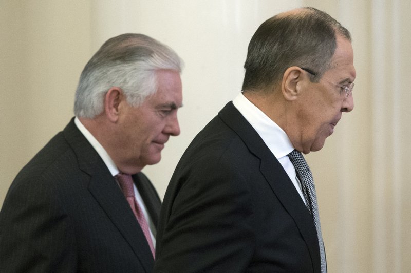 MOSCOW (AP) — Russia’s top diplomat accused the United States on Wednesday of carrying out an unlawful attack against Syrian President Bashar Assad’s forces as he opened a fraught meeting with visiting U.S. Secretary of State Rex Tillerson.