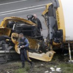 The crash left the bus lying on its side on the guardrail of Interstate 80 in Mount Olive, its undercarriage and front end sheared off and its steering wheel exposed. Some of the victims crawled out of the emergency exit in the back and an escape hatch on the roof. More than 40 people were taken to area hospitals.
