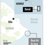 They were aboard a tour boat that takes visitors to see lava plunging into the ocean from a long-erupting volcano that has been vigorously shooting lava from a new vent in the ground for the past two months. The lava punctured the boat’s roof, leaving a gaping hole, firefighters said.