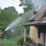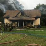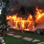 Officials say an off-duty firefigher spotted smoke coming from the home shortly after 11am and called 911. It took crews about 10 minutes to bring the fully engulfed house under control.