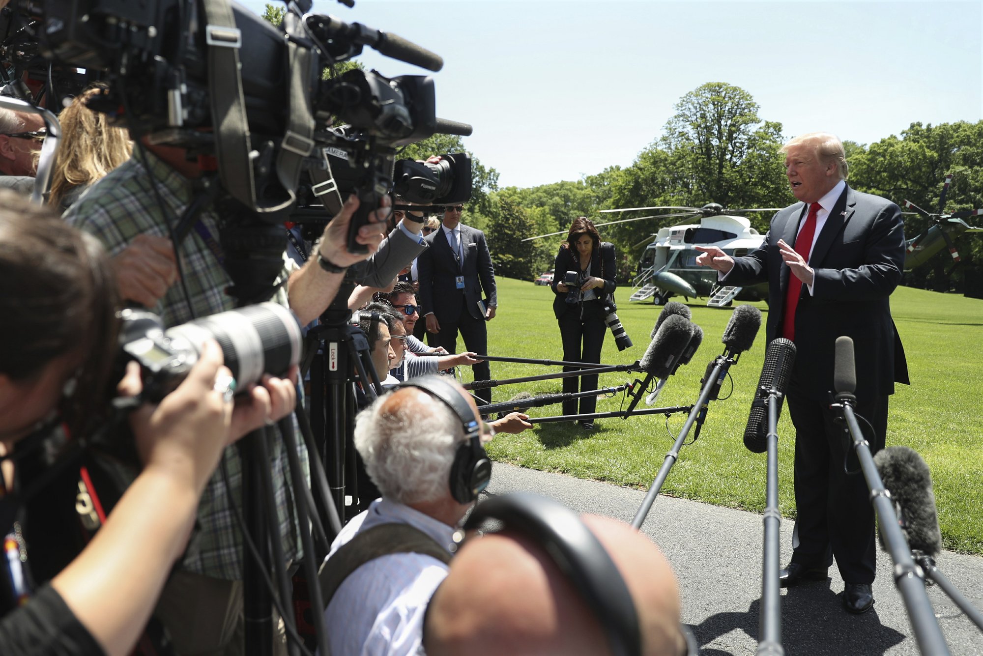 Trump said the troops would have a “mostly protective” role. He spoke to reporters on the White House lawn as he headed out on a trip to Japan.