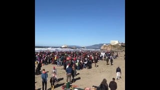 San Francisco Residents Gather Along Beach for Anti-Trump Demonstration