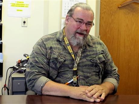 Nursing assistant Tom Alligood wears camouflage scrubs during his emergency room shifts at the Dorn VA hospital because he says it helps other veteran patients realize they've "walked over the same dirt," the 62-year-old former Army tanker says.